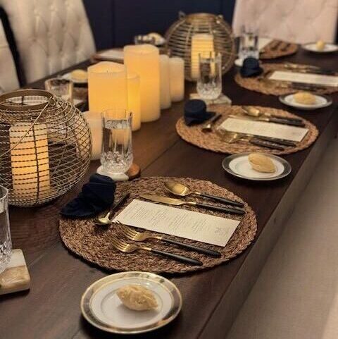 So, skip the crowds, the reservations, and the noise, and let us take care of the food, wine, and clean up while you enjoy a luxurious catering experience for you and your guests! We also provide our own plateware, flatware, and stemware so that you can fully indulge in the fun elements of your dinner party, such as the centerpieces and tablescapes!